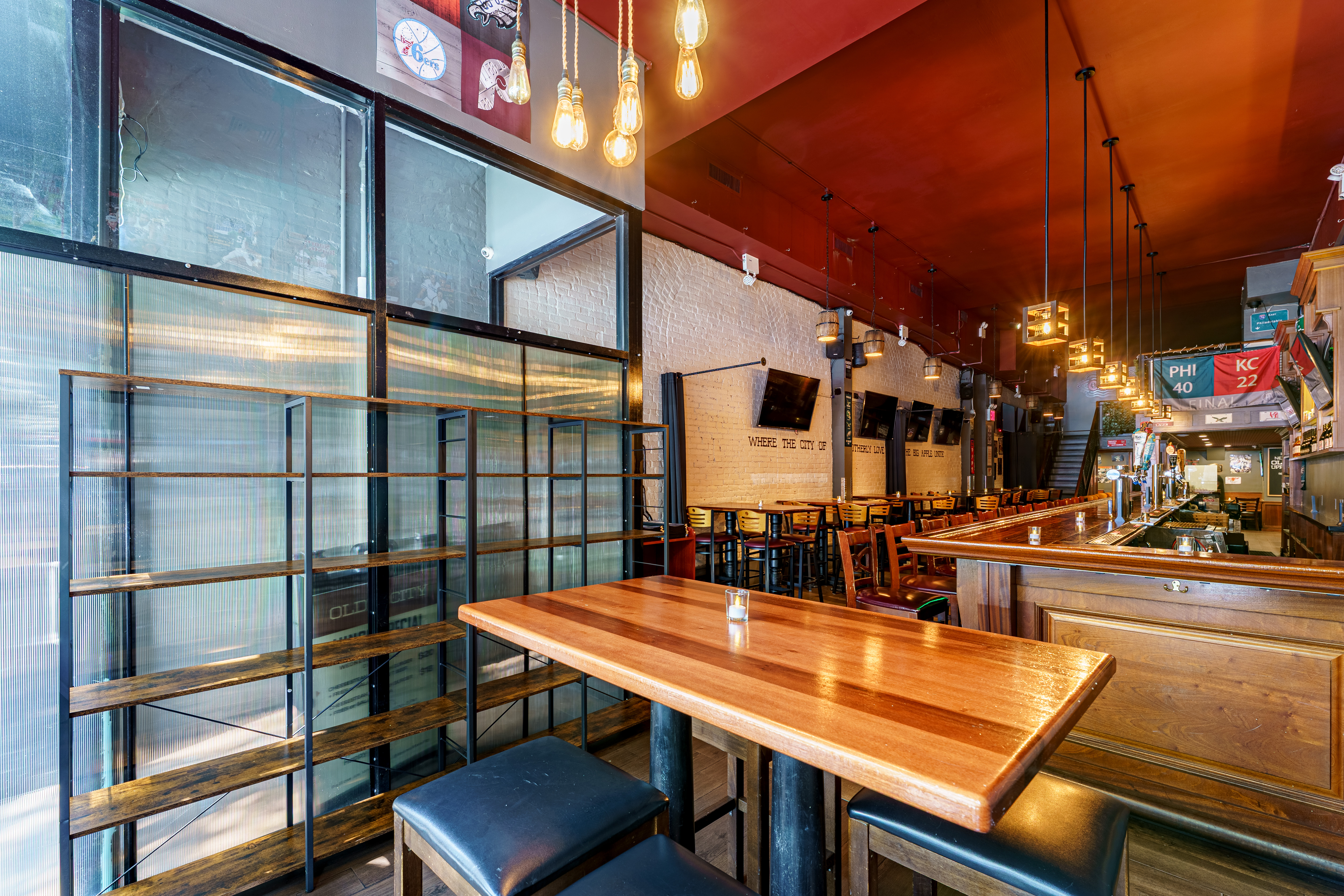 Experience everything Olde City has to offer, but in total privacy. We'll even close the door for you. It's definitely a room with a wow factor. It has two 65" TV's and plenty of seating. You'll want to reserve it for any celebratory occasion.